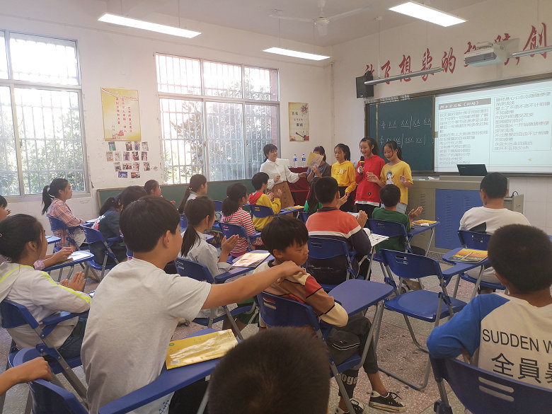 行程第一天,志愿者们迎着朝霞于早上六点四十从我校出发,历经三个多小时的车程、携带着备用的音响设备、话筒于上午10:00准时到达南轩中学,经过一番设备的调试和与学生的互动、沟通后,音乐专业杨玉燕老师给少年宫的孩子们带来了一堂别开生面的音乐课,杨老师循循善诱的教学让起初羞涩闪躲的孩子们渐入佳境,孩子们积极学唱,还主动上台展示,最后,在表演分组合作探究的小合唱作品中掀起了整堂课的高潮。