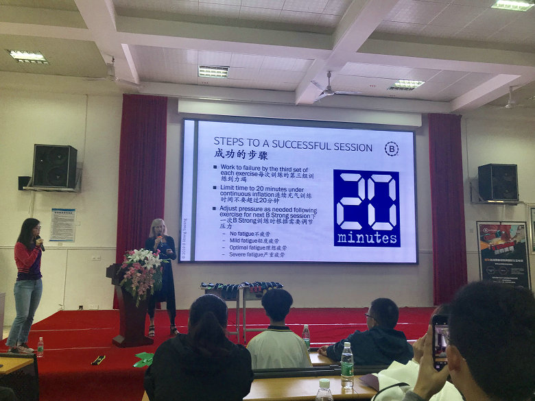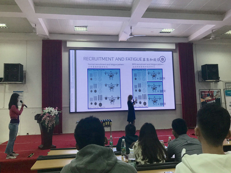 10月25日上午,科研室开展《血流限制训练技术分享会》,邀请来自澳大利亚的物理治疗师,运动生理学专家Natalia Perkins为我校全体教练员及各训练单位、训练基地、体育传统项目学校教练员进行科学化体能培训。专家通过对血流限制训练的历史及训练引发的局部和系统性生理机制,介绍了上肢,下肢和全身强化训练方法。该训练方法被誉为运动训练和运动康复领域革命性的技术进步,它将大大缩短训练时间,减轻训练所需负重和强度,从而在最大化训练收益的同时将损伤风险降到最低,适用于跆拳道、举重、摔跤、柔道、田径、游泳、足球、羽毛球、篮球等各项运动。