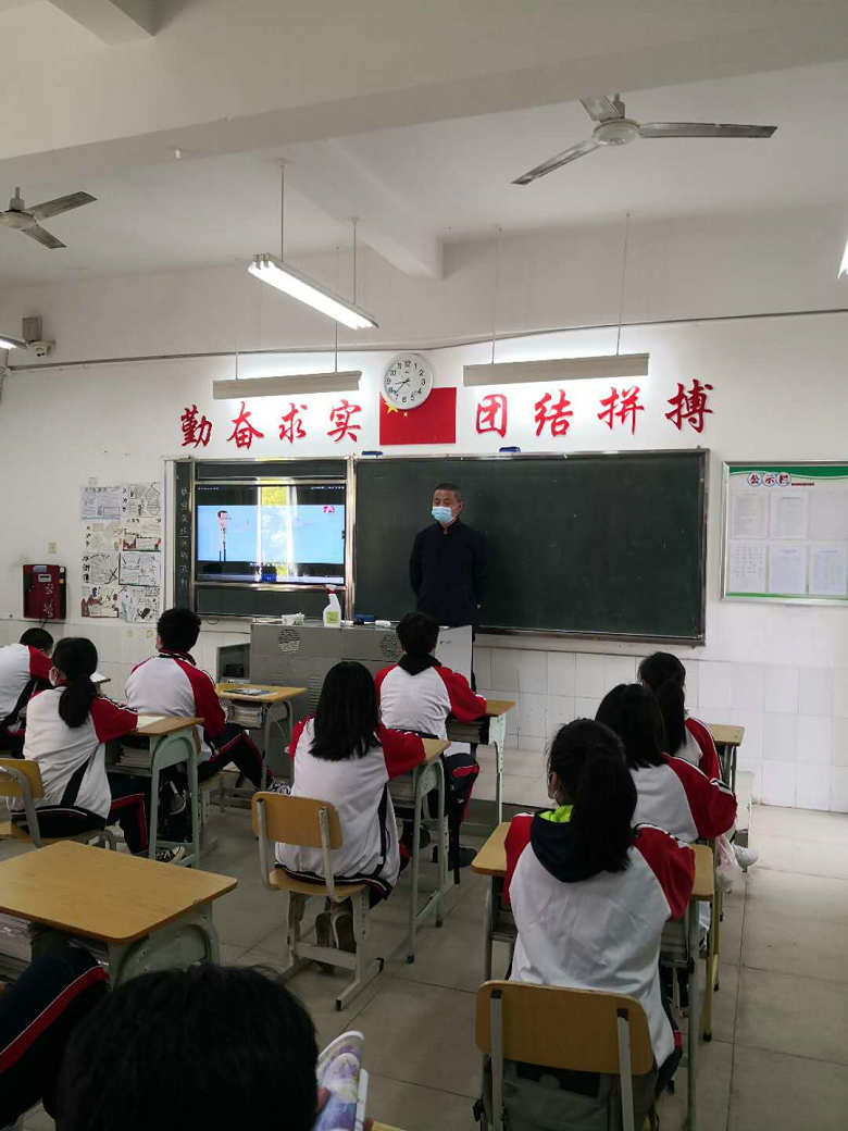 4月8日上午第一节课,全体初三学生统一收看防疫示教片。班主任和任课教师共同有序进行晨检,准备上课。学校部署复学防控两手抓,开学工作步入正轨。