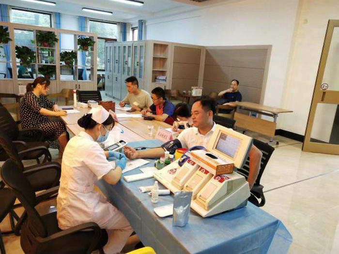 有的老师下课后从教室走出,直接来到献血点撸袖献血;有的老师献血后立刻重返教学岗位;有的因献血时间间隔短,或身体原因不能献血,倍感遗憾;有的连续测量5次血压,仍然希望能够通过检测……他们用自己的实际行动诠释着教育工作者关爱生命、无私奉献的大爱仁心。
