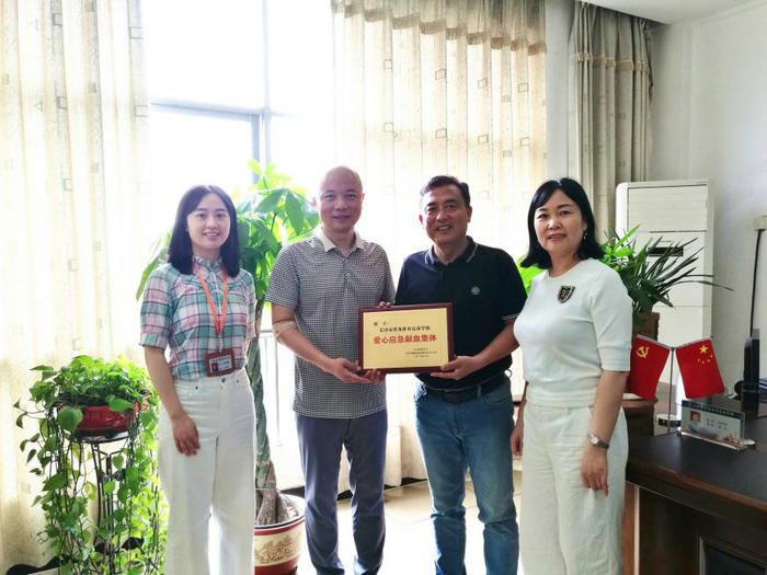 长沙血液中心授予学校“爱心应急献血集体”称号