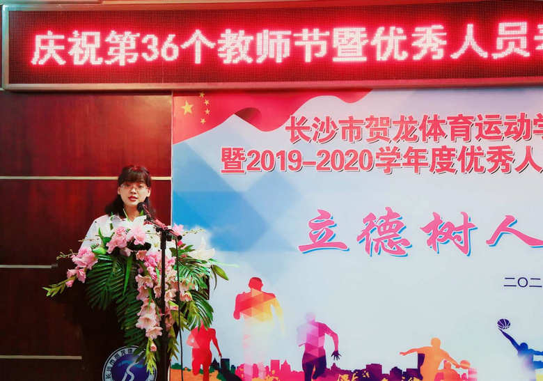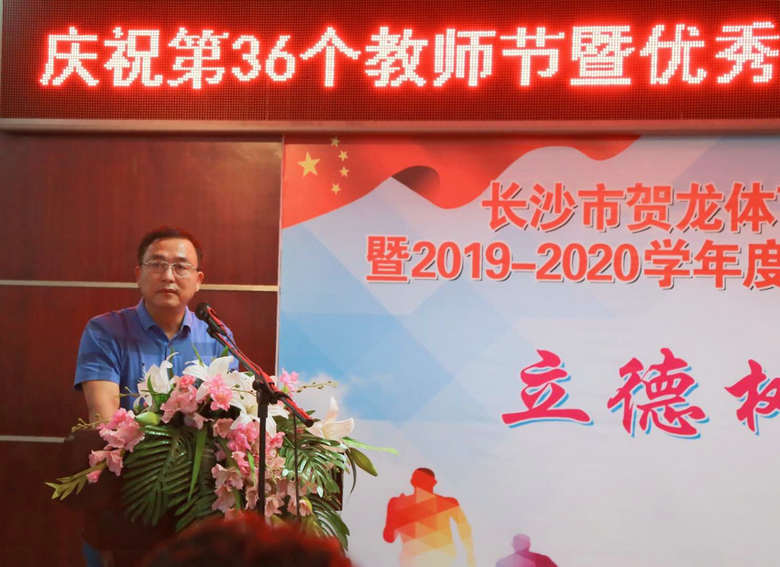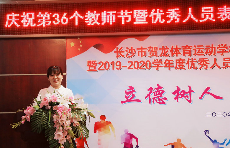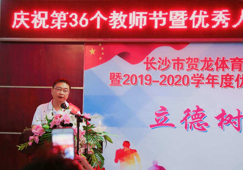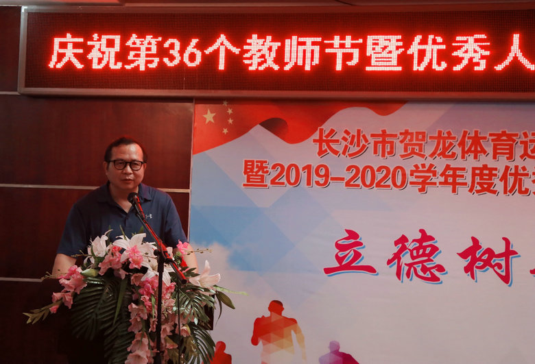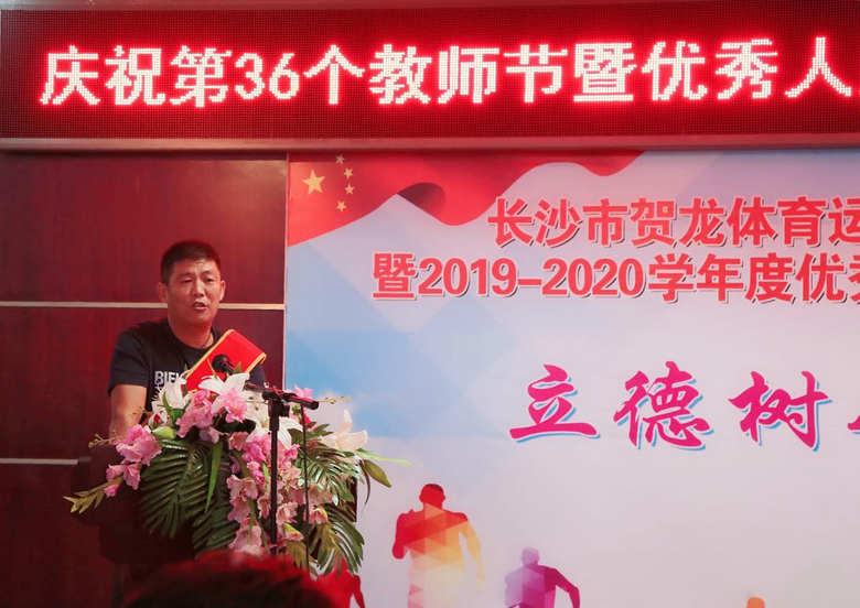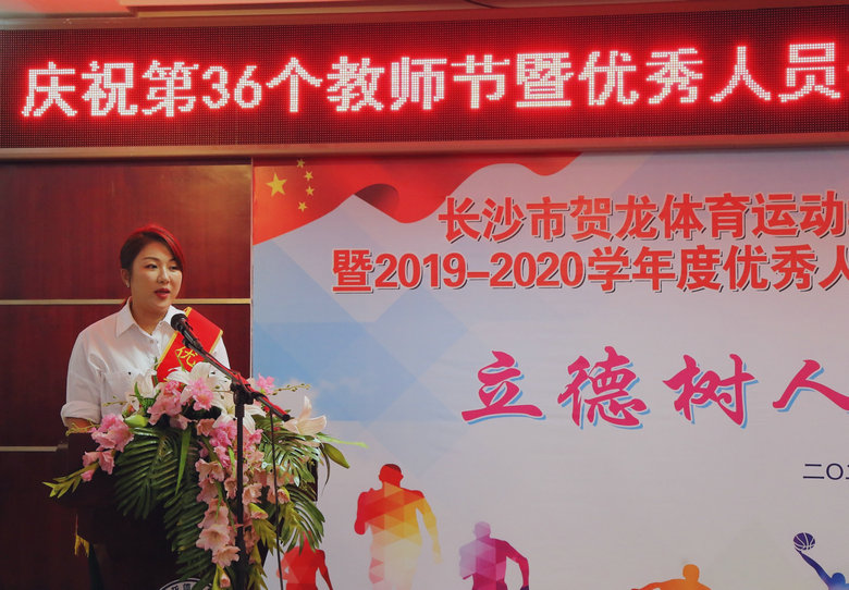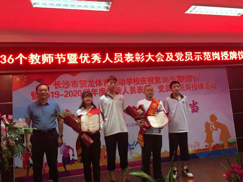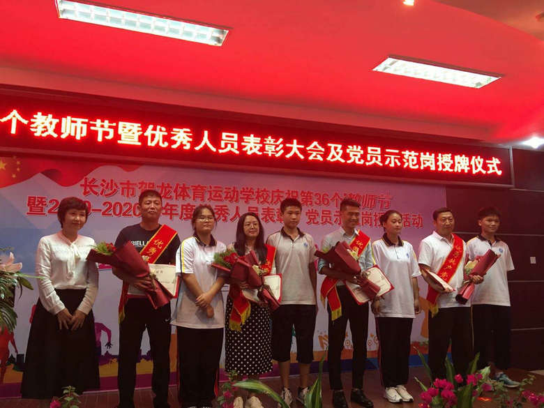 9月10日下午,长沙市贺龙体育运动学校隆重召开2019-2020学年度教师节表彰大会暨党员示范岗授牌仪式。大会表彰了18名优秀教职工,为9名党员示范岗授牌。