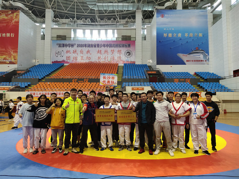 9月21--23日,由我校柔道和摔跤项目共同组队,首次参加在宁乡举办的2020年湖南省青少年中国式摔跤锦标赛,获得4金、6银、6铜,团体总分排名第三的好成绩,并获体育道德风尚奖。