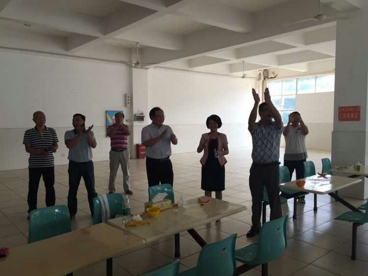 在学校领导的陪同下,江哲明书记,李平局长来到学校食堂,与教职工亲切交谈,倾听教职工的心声,勉励大家奉献于教育、体育事业。(撰稿:刘爱玲)