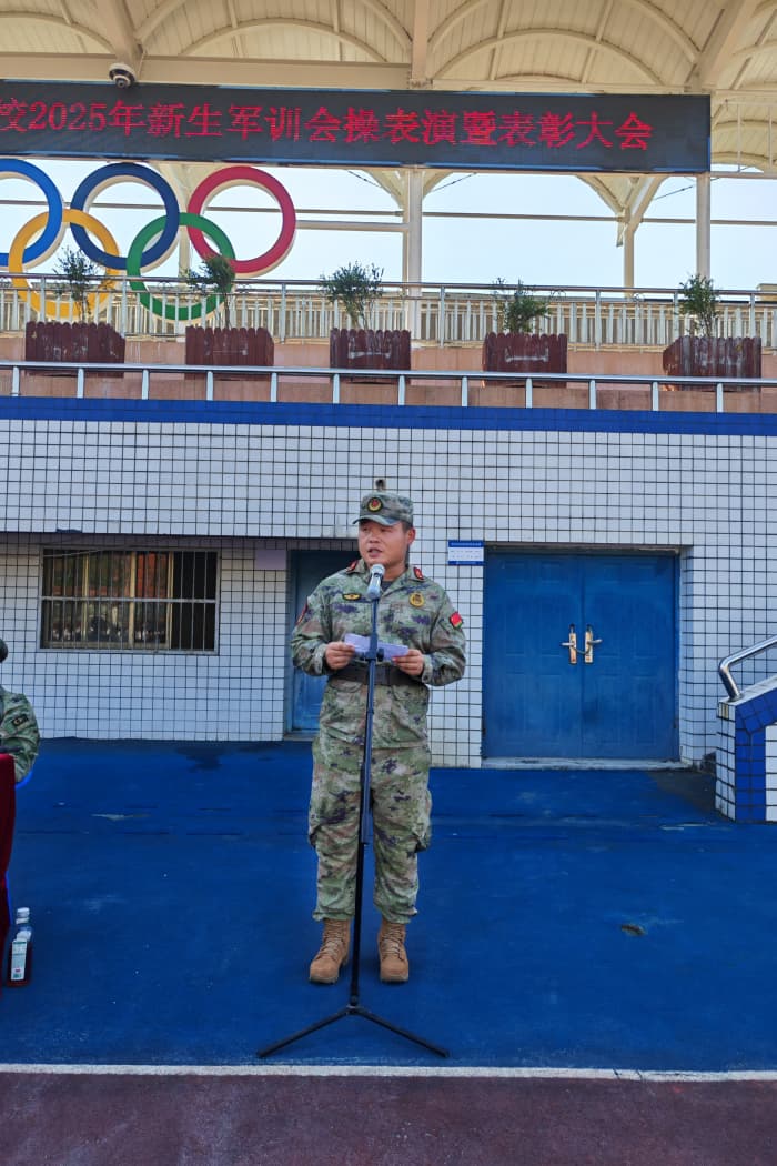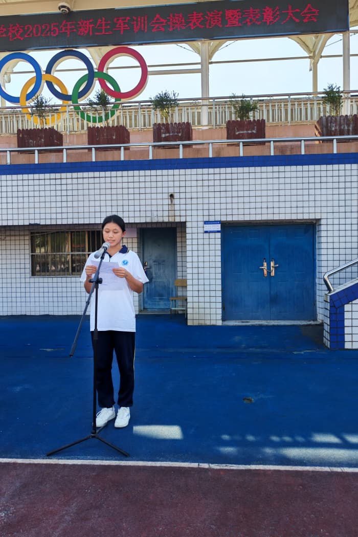 G2504班王玉洁同学代表新生发言,她在发言中回顾了军训点滴,她感言:“从站军姿颤抖的双腿到正步行进如风的自信,我们学会了把‘不可能’变成‘不,可能!’军训让我们学会了自律,拥有的韧性,更懂得了担当。”同学们在军训中经历了烈日的暴晒、身体的疲惫、但他们都坚持了下来,这种坚持和成长将伴随着他们一生。