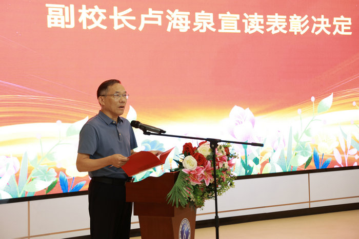 会上,首先副校长卢海泉宣读学校表彰决定。伴随着隆重的颁奖典礼背景音乐,21位获奖同志身披绶带分批次上台领奖,脸上洋溢着幸福的笑容。局领导和校领导为他们颁发了荣誉证书,并送上了一束束美丽的鲜花。