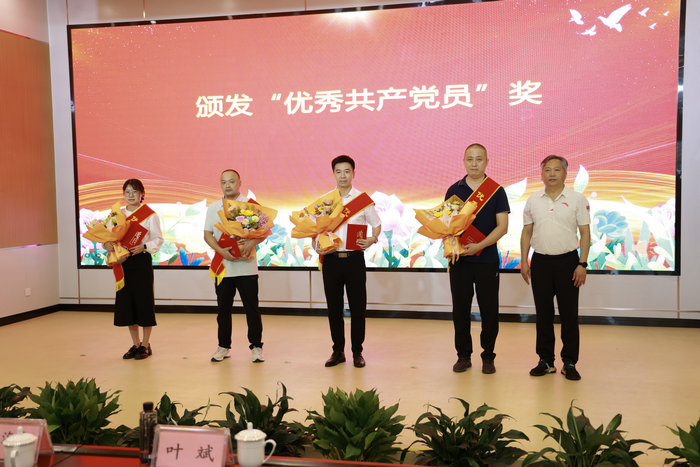副校长叶斌为获得“优秀共产党员”的同志颁奖