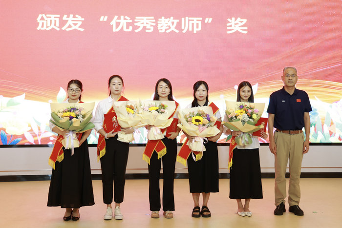 副校长卢海泉为获得“优秀班主任”的同志颁奖