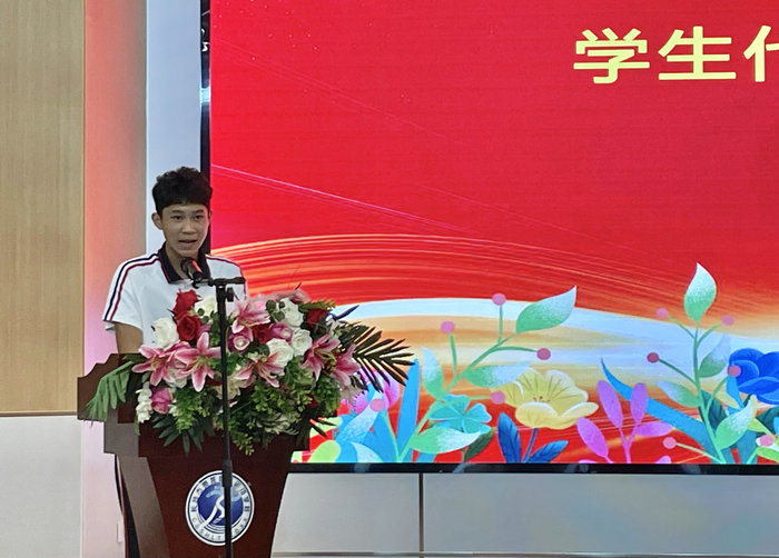 “我想代表全体同学,向在座的每一位老师、每一位教练,深深地鞠上一躬,道一声:’谢谢!’感谢你们的耐心教导,感谢你们的无私关爱,感谢你们为我们的成长倾注的所有心血。” 来自G2504班的学生代表阳一峰,用他声情并茂的发言表达了全体学生对老师的祝福和感恩!