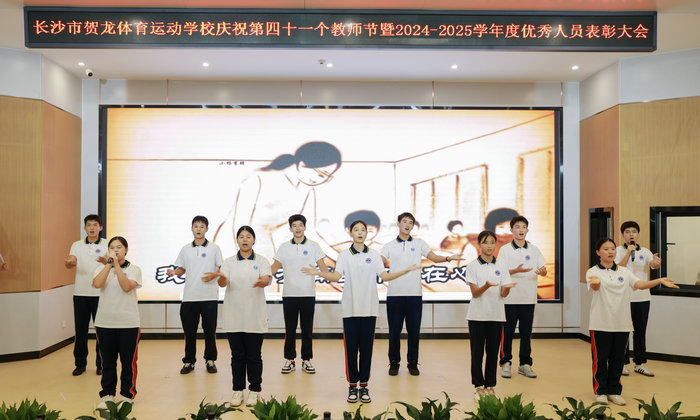 9月10日下午,为了表彰先进、树立典型,厚植全校优师强师的根基,营造浓厚的尊师重教氛围,我校隆重举行“以教育家精神铸魂强师,谱写教育强国建设华章”庆祝第41个教师节暨2024-2025学年度优秀人员表彰大会,长沙市体育局局党组成员、副局长吴伟辉受邀出席会议。全体教职员工身着正装、精神抖擞,欢聚在学校报告厅,热烈庆祝这个属于自己的节日。
