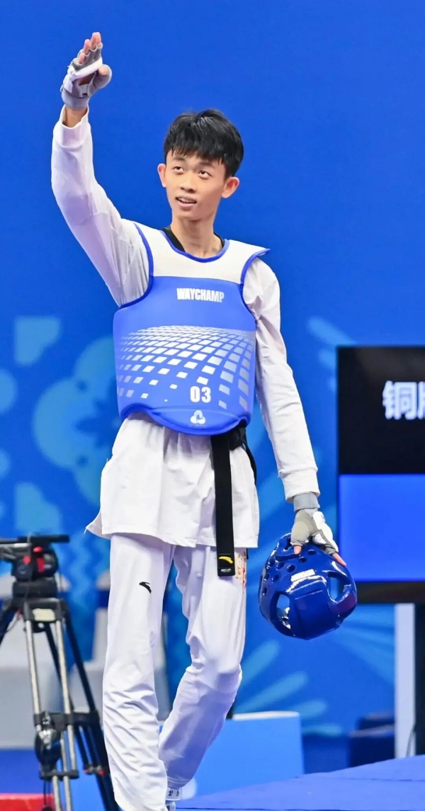 9月26日,全运会跆拳道项目决赛中,黄锦诚在男子58公斤级比赛中摘得铜牌。