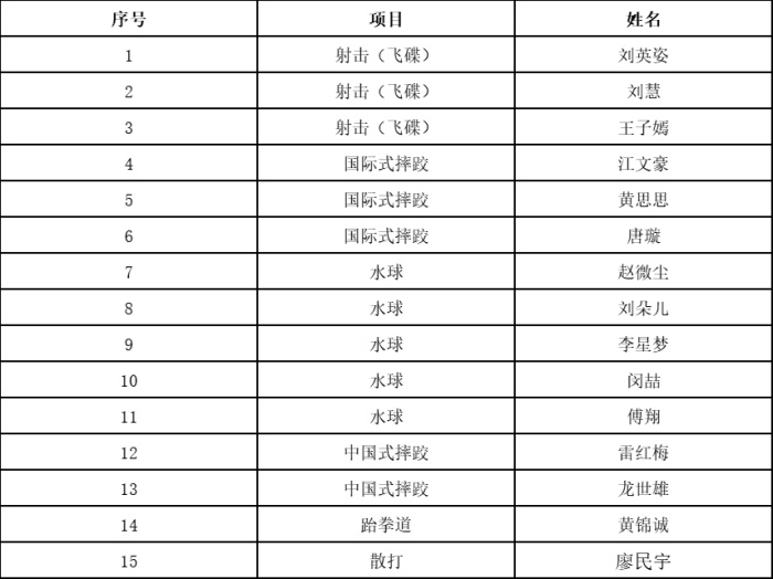 在这支"体育湘军"中,由贺龙体校培养输送的,长沙市射击(飞碟)、国际式摔跤、水球、中国式摔跤、跆拳道、散打六大项目共15名运动员将代表湖南参加本届赛事。