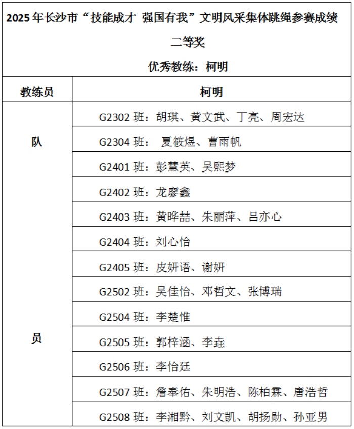 在集体跳绳项目中,我校跳绳队在柯明老师的指导下,以整齐划一的节奏、轻盈敏捷的身姿,在空中划出优美的弧线。他们凭借稳定的发挥和完美的团队协作,荣获二等奖,体现了速度、耐力与协作的完美结合。