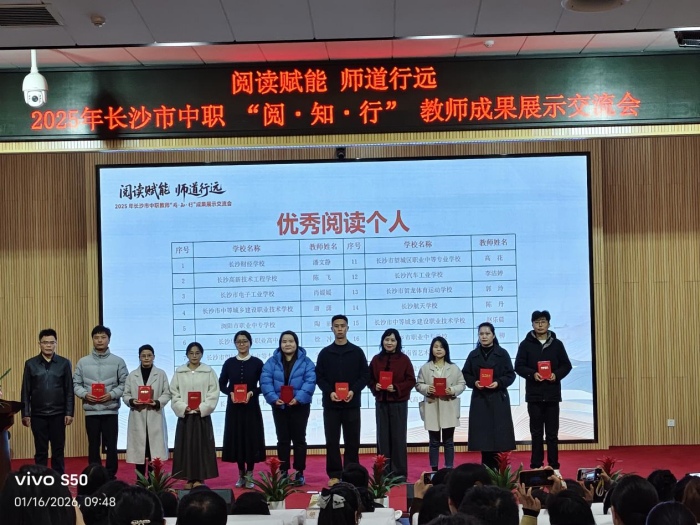 本次活动由长沙市教育局主办,以“阅读赋能,师道行远”为主题,全市各中职校齐聚一堂,集中展示阅读与教育实践深度融合的丰硕成果。我校党委高度重视教师阅读素养提升工作,自“阅·知·行”活动启动以来,积极组建教师阅读团队,围绕“体育专业+人文素养”双主线开展沉浸式阅读与研讨,形成了“以读促研、以研促教”的良好氛围。