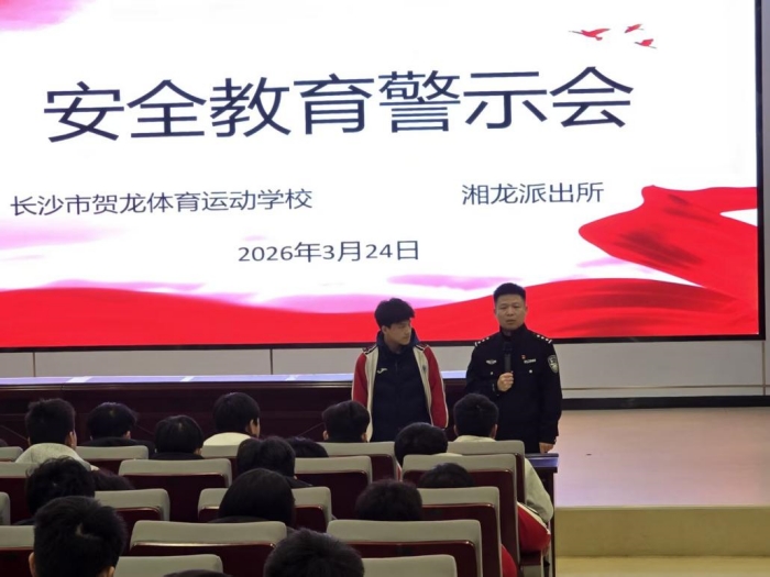 为切实强化学生安全防范意识,筑牢校园安全屏障,2026年3月24日上午,由我校训练科牵头组织,特邀长沙市公安局校园安全保卫大队警官窦熙炜、湘龙派出所警官柳聪,在学校报告厅为摔跤队、柔道队、跆拳道队、散打队、中国跤队、空手道队的重点队员召开了一场安全警示教育讲座。