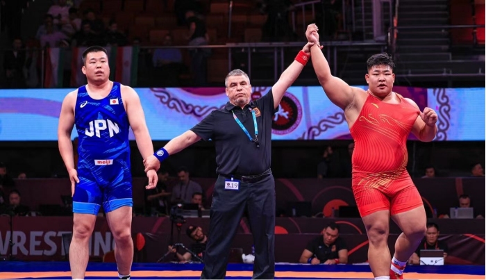 据了解,本次亚洲摔跤锦标赛汇聚了亚洲各国顶尖摔跤选手,竞争异常激烈。作为中国代表队的一员,江文豪肩负着使命与期待,在赛场上沉着冷静、敢打敢拼,充分展现了精湛的摔跤技巧、过人的身体素质和灵活的战术运用。