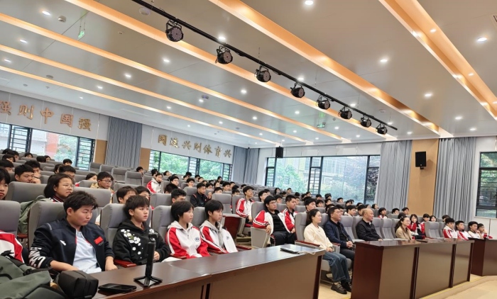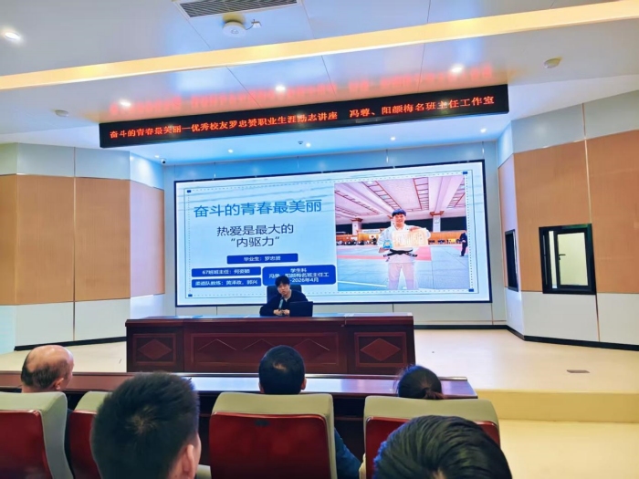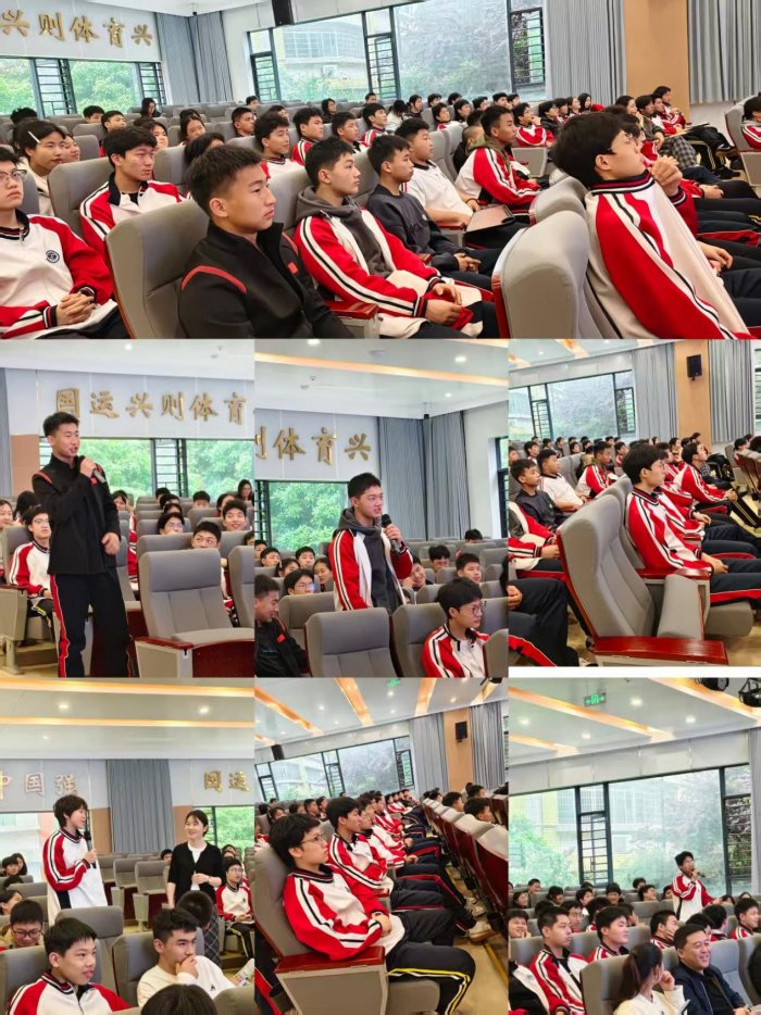 为充分发挥优秀校友的榜样示范作用,激励学生树立远大理想、明确奋斗目标、勇于拼搏进取,2026年4月15日中午,长沙市贺龙体育运动学校冯蓉、阳颜梅名班主任工作室邀请我校优秀毕业生罗忠赟同学,返校开展“奋斗的青春最美丽”职业生涯励志讲座。活动由冯蓉老师主持,各班学生代表齐聚学校报告厅,聆听这场成长与追梦的分享。
