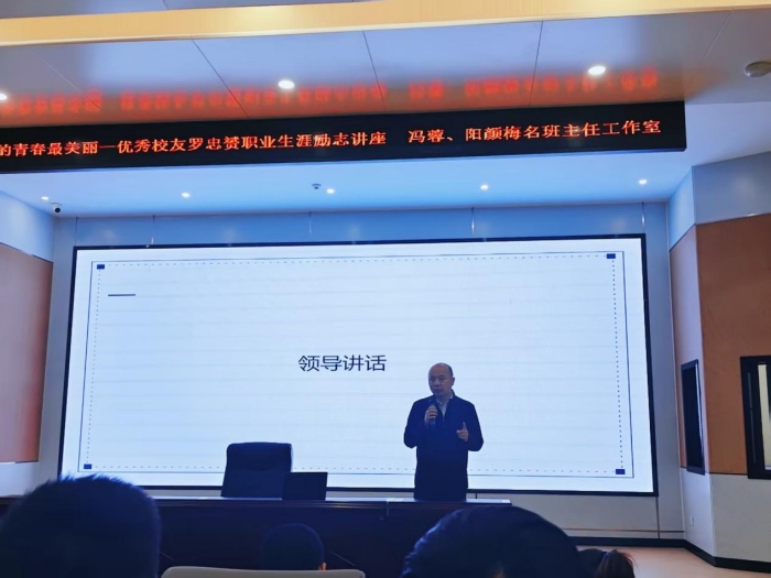 讲座最后,学校党委书记罗文军对同学们深情寄语:青春的底色永远是奋斗,目标是照亮前路的灯塔。希望同学们以罗忠赟校友为榜样,既要扎根专业、打磨本领,也要树立清晰目标,把热爱化作坚持的动力,把迷茫变成前行的方向,在成长路上不躺平、不放弃,用每一次努力为未来铺路,用奋斗书写属于自己的无悔青春。