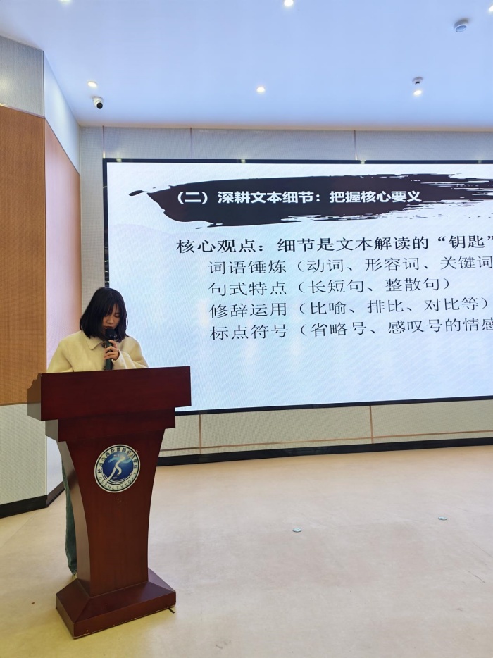 在成果分享环节,各小组代表依次登台,围绕“阅训融合 赋能育人”的核心主题,结合教学训练实际,分享了读书心得与实践应用案例。从专业书籍的理论感悟到课堂教学的创新尝试,从训练科研场景的方法优化到育人过程的理念升级,代表们的分享干货满满、亮点纷呈,充分展现了阅读对教育教学工作的赋能实效。