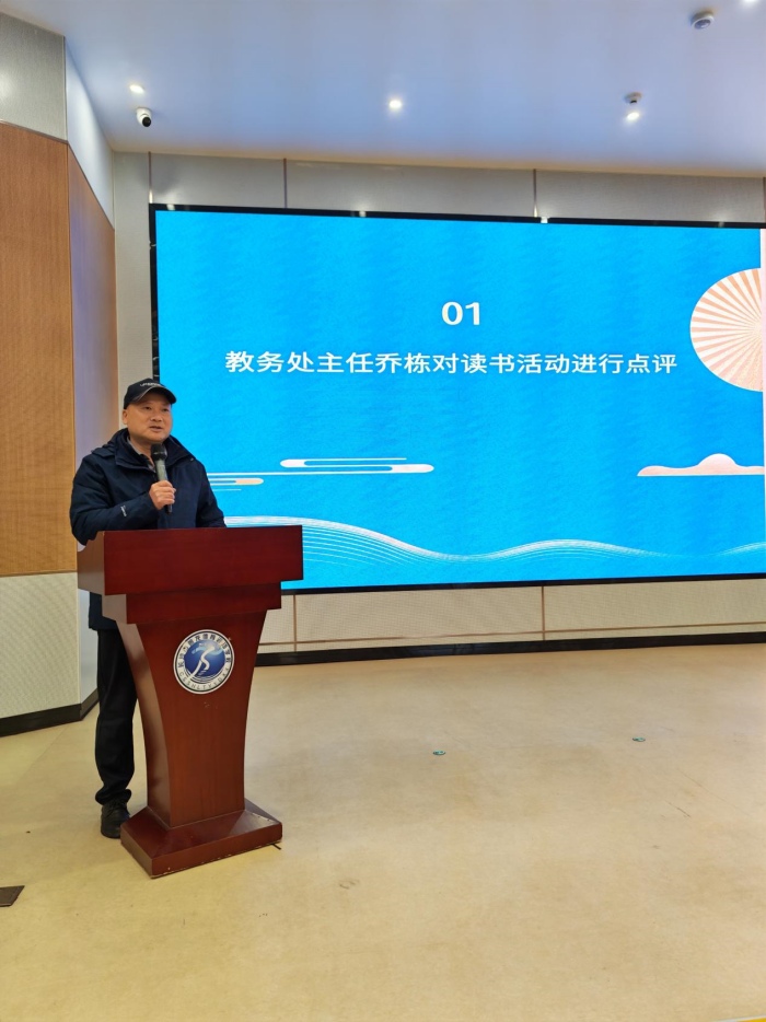 各组代表分享结束后,教务处主任乔栋对读书活动进行了点评,用具体数据和鲜活案例展现了教师们的参与热情与实践成果,同时客观指出了活动推进中存在的不足,并从优化活动形式、强化成果转化等方面提出了针对性改进建议。